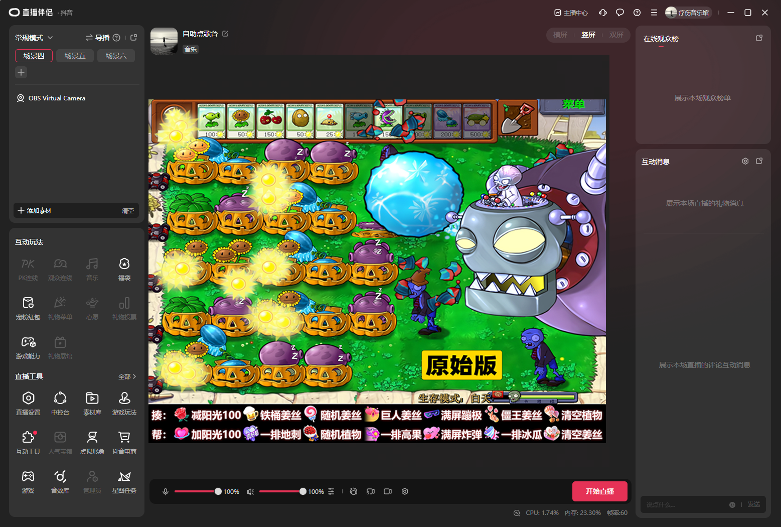 OBS直播教程:植物大战僵尸直播间如何搭建?